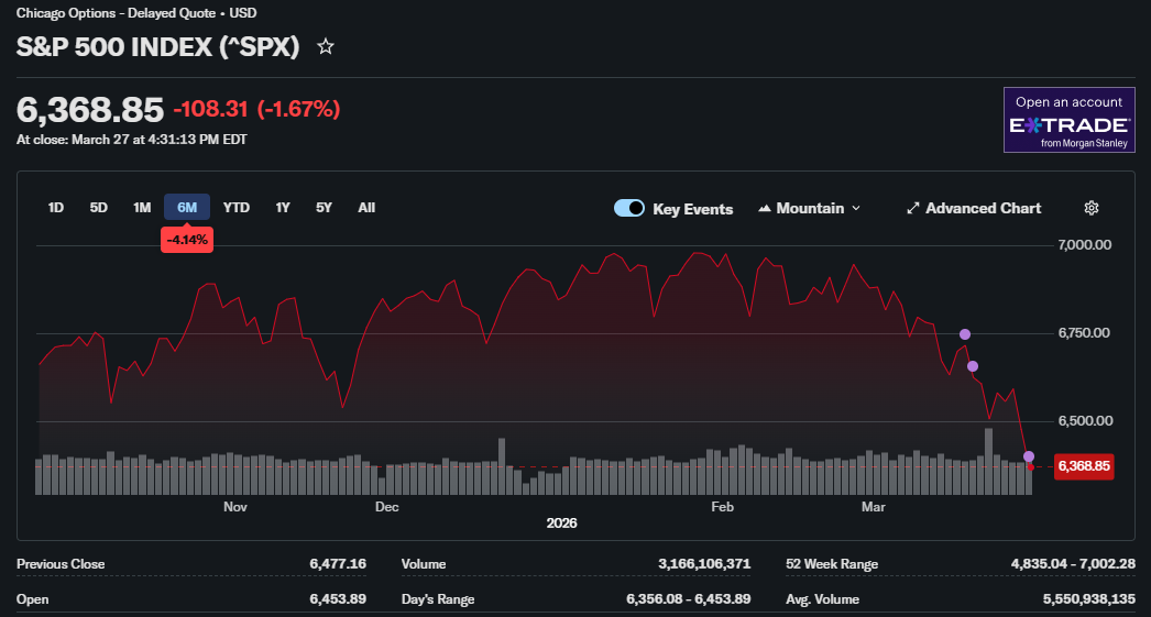 Currently as of 3/28/2026 I believe this would be a good time to start buying as this market correction has been huge and as we can see a VIX above 30 is always pretty scary but long term this could be a very good buying opportunity. Shares are what I would advise here and maybe some options but long dated options as bearish volume has been really strong here lately so your IV will already be pretty high making you bank on a larger move vs. owning shares. Shares in this market will allow you to get a hefty discount on just about anything you are bullish on which could be a good thing if they are included in the recovery or could be bad if they are going through a repricing event. CATs is also another good idea for a market like this as you will be further from the 30 VIX and the blood red SPX instead you will be watching for Tornados, Tsunamis, Hurricanes, etc. which could be a safer game at this point. Understanding the balance between debt and equity in a portfolio is very hard especially what kind of equity and same with debt but at the end of the day having b0oth is always nice and can lead you down a safe street. Noting CATs are not the safest debt as that would be the T-Bill in essence but the idea is not for you to only buy CATs but to realize debt is out there on many things not just large firms like your local school or park was probably built using Muni bonds to some extent. Debt is all around us and it is important to use that to your advantage as a chance to diverisfy away from equities and market risk.